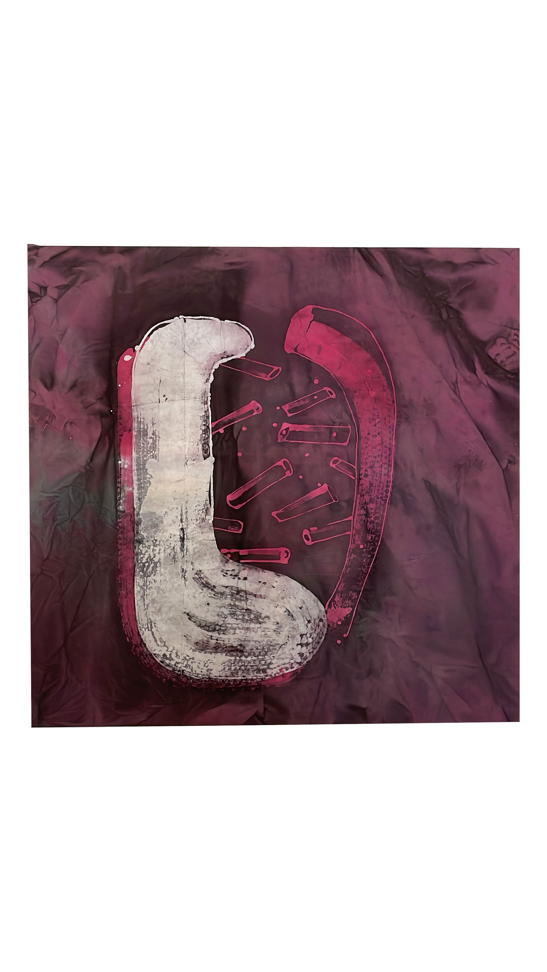 `ohne Titel´ (Tubes), 100 x 100 cm, Batik auf Baumwolle, 2025