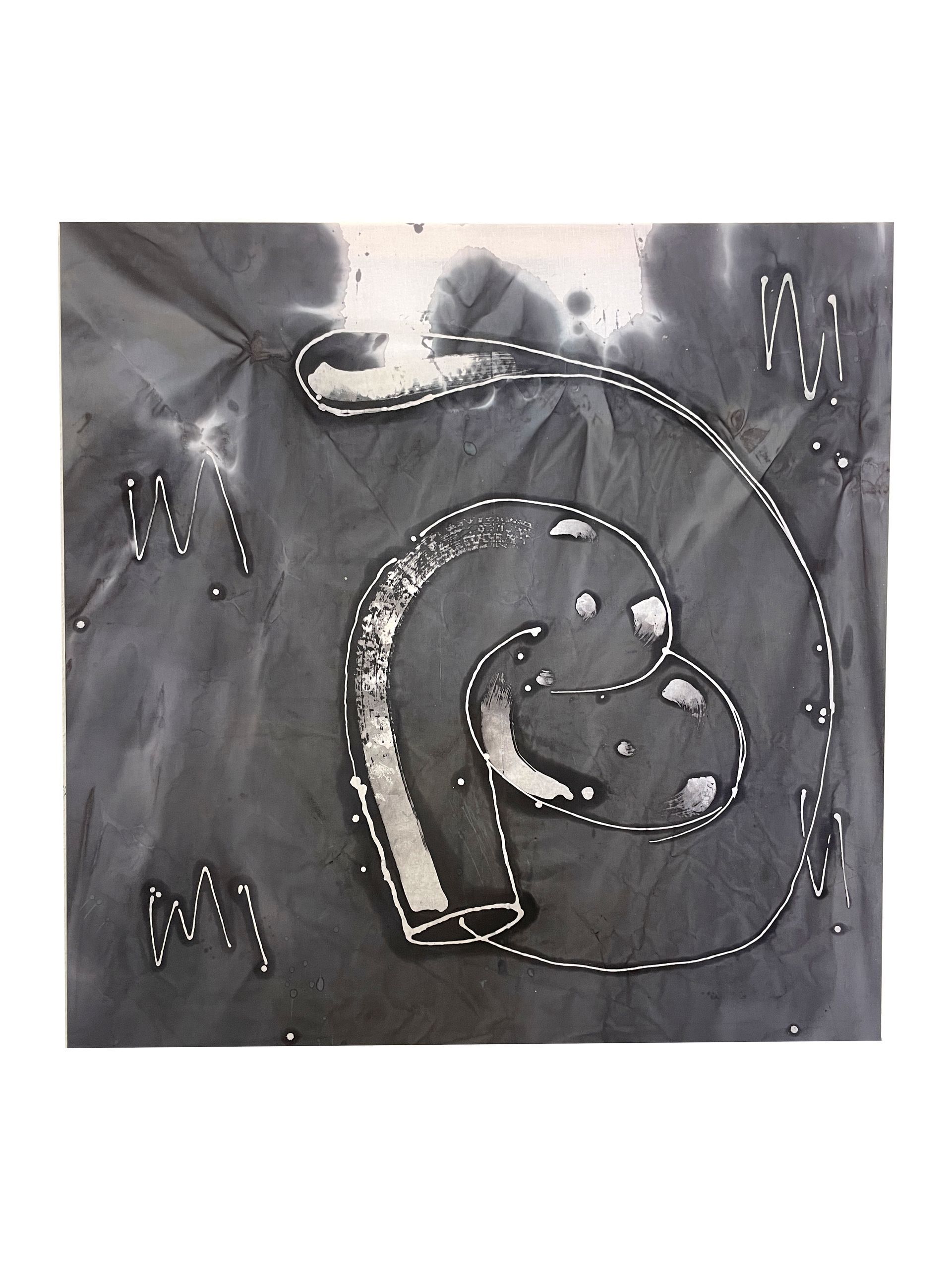 `ohne Titel´, (Turbo), 100 x 100 cm, Batik auf Baumwolle, 2025
