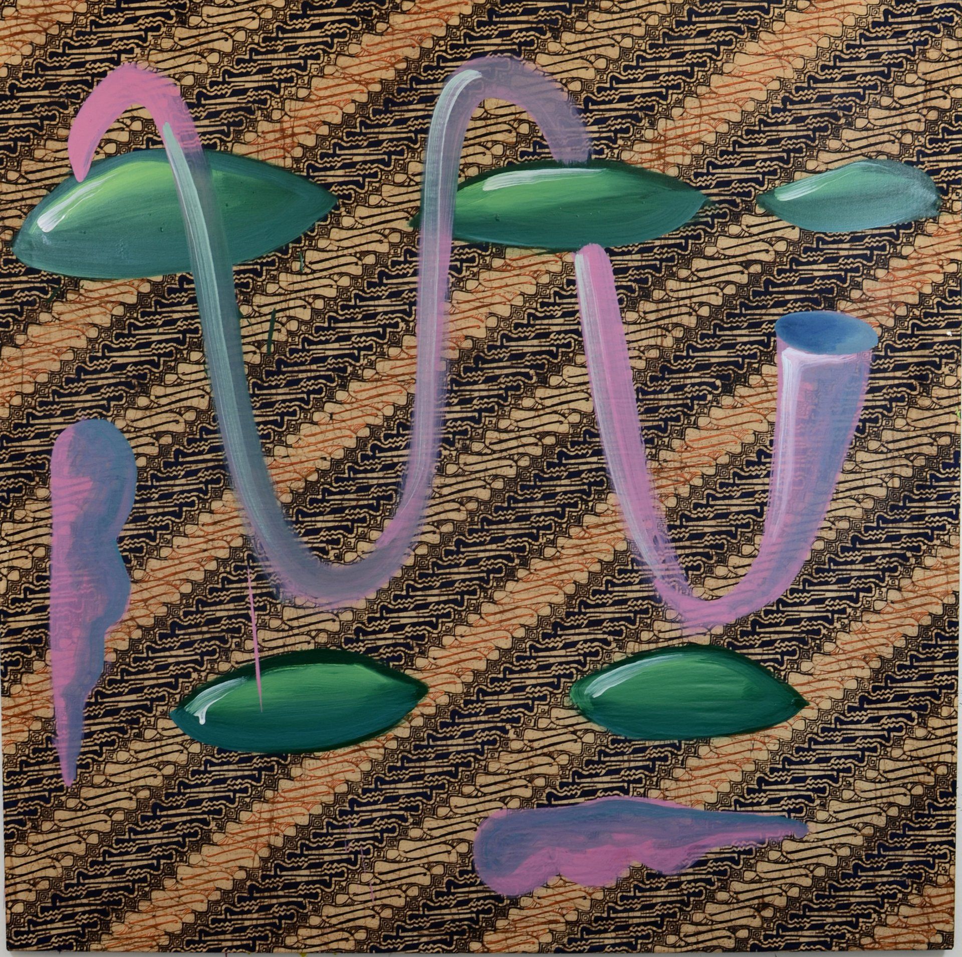 `Float´, 110 x 110 cm, Öl auf indonesischer Batik, 2020